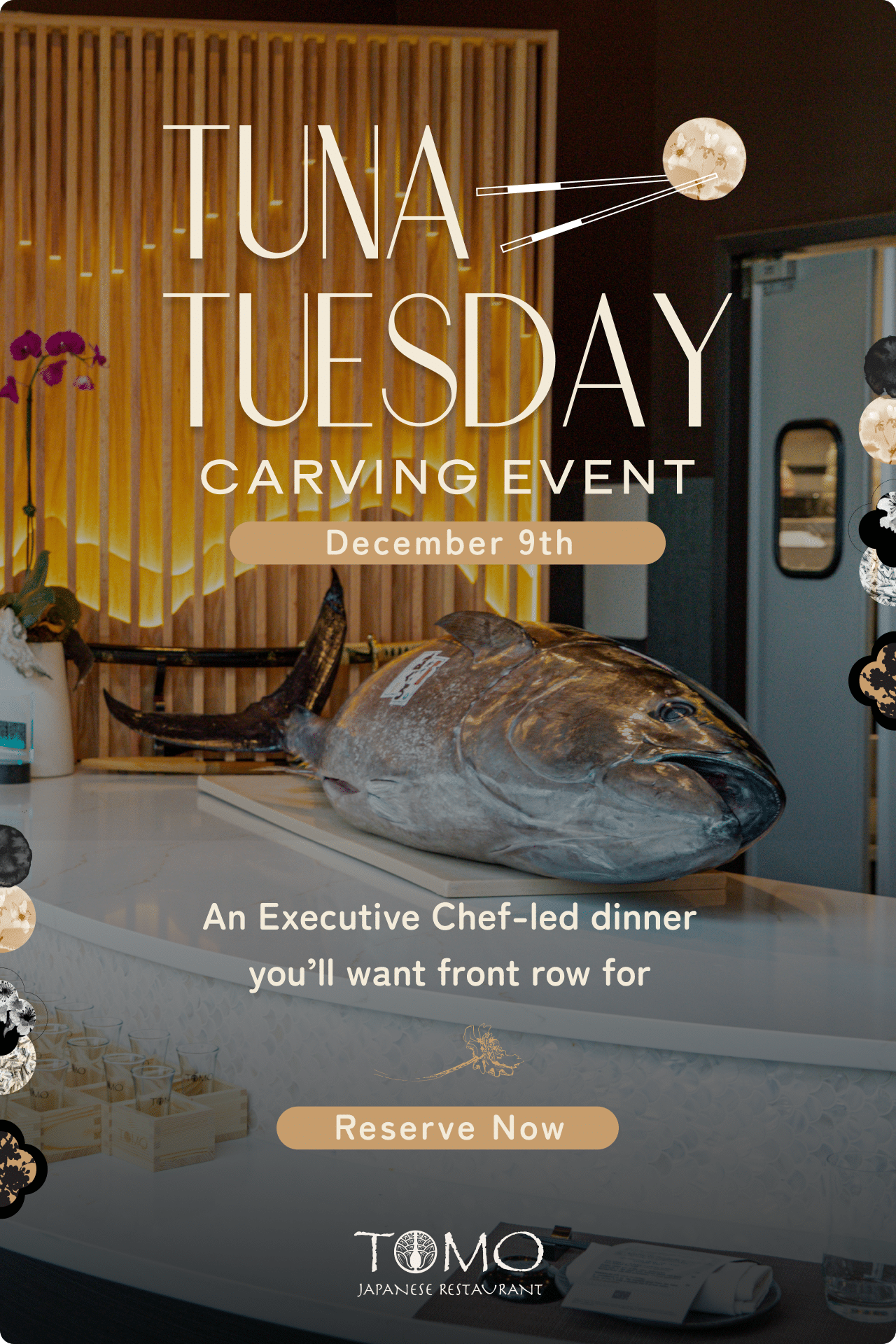 At Tomo, Tuna Tuesday is more than just a special night. It’s a celebration of Japanese culinary craftsmanship. Witness the art of tuna carving, savor the richness of this extraordinary fish, and indulge in an exclusive dining experience unlike any other.